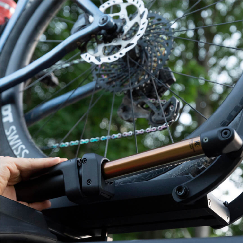 Hit the levers and watch as the cradle arms open automatically into position. Küat’s new patented hydro-pneumatic OneTap levers make loading your bikes easy, and fun.
