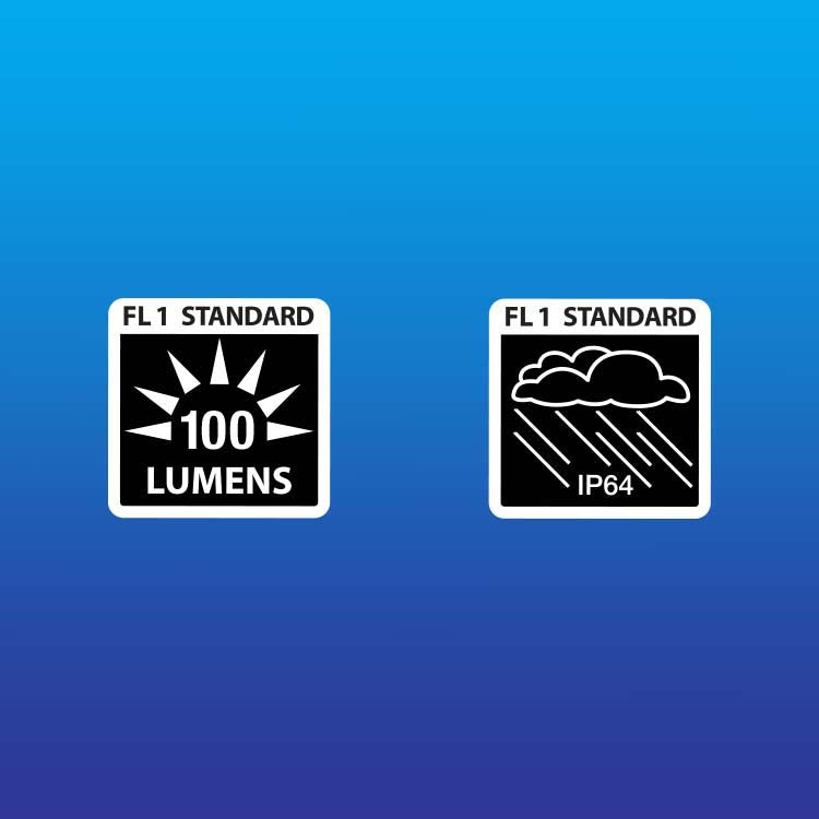 Tested to perform meeting FL1 Standards in lumen output and water resistance.