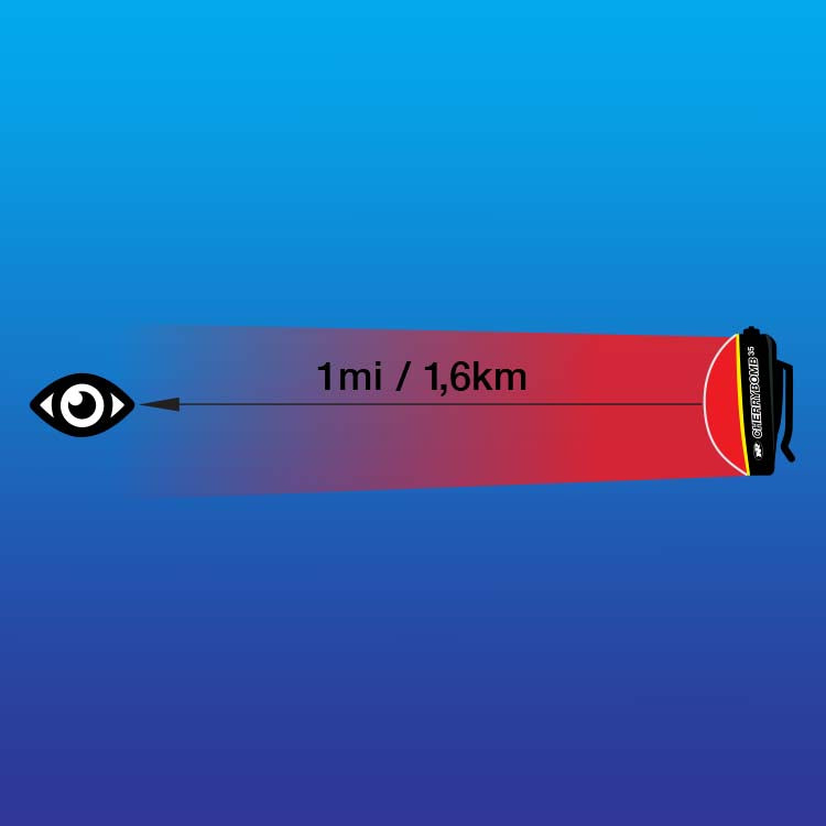 Featuring a multi-directional collimator specifically designed for cycling, the CherryBomb100 maximizes visibilityup to 1 mile away.