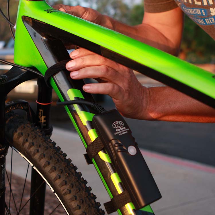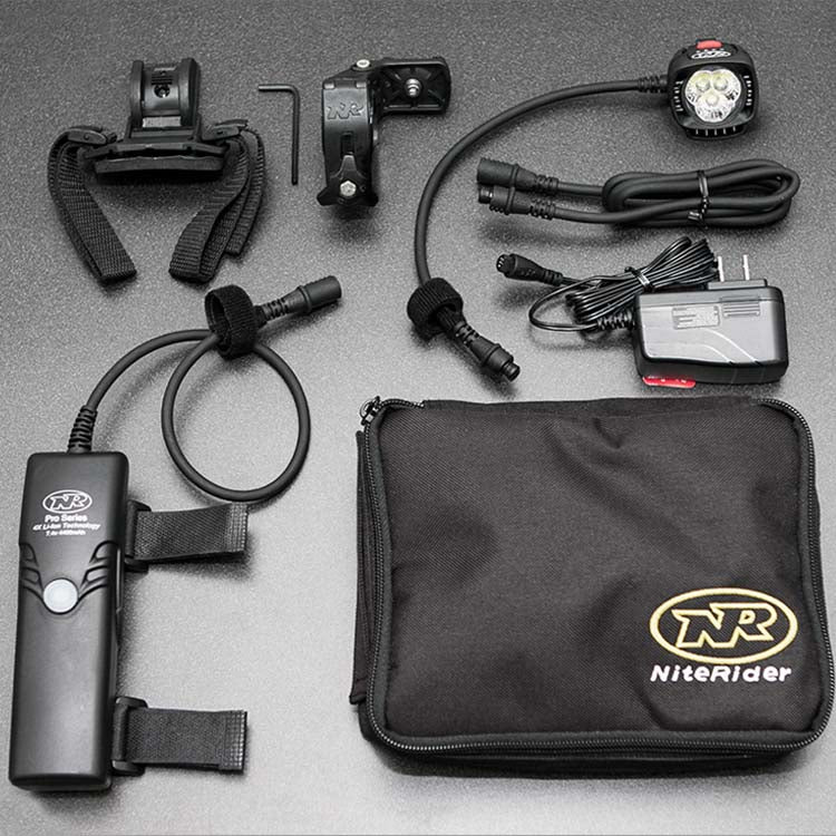 • The choice is yours. The Pro 2200 Race comes with a handlebar mount, fitting up to 35mm bars, and a helmet mount that's perfect for vented helmets. Comes with an extension cable to lead the battery into a riders backpack.