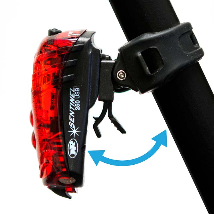 Also features an innovative Group Ride Mode where you can be seen without distracting fellow cyclists' attention from the pavement or dirt. At 116 grams the USB rechargeable Sentinel meets all required FL1 Standards for impact testing and dust/water resistance. The easy on-and-off seat post strap with quick release tab makes the Sentinel convenient when you do need to give it a quick charge.
