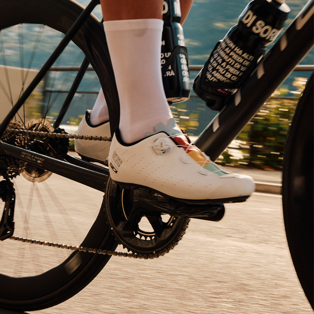 The fast and efficient shoe with tested strength and grip for the most demanding actions. Easy adjustment and a clean design make it even easier and more immediate to use. Developed in partnership with Sartoria Ciclistica, these shoes embody the spirit of cycling as a recreative activity, perfectly paired with a cup of coffee.