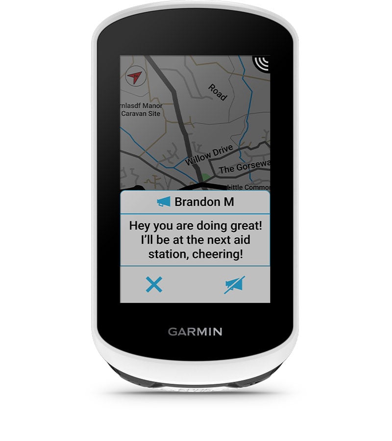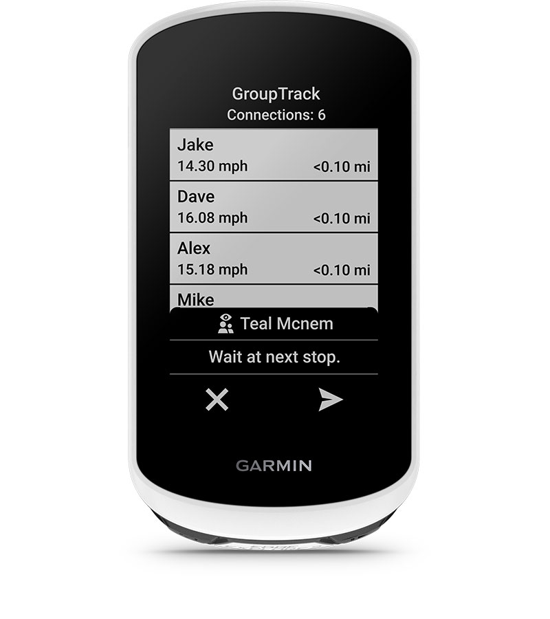 Pair with your smartphone, and stay in touch with your riding crew when you get separated from the pack. Group messaging is available for riders using compatible Garmin devices, and only riders with those devices may be messaged.