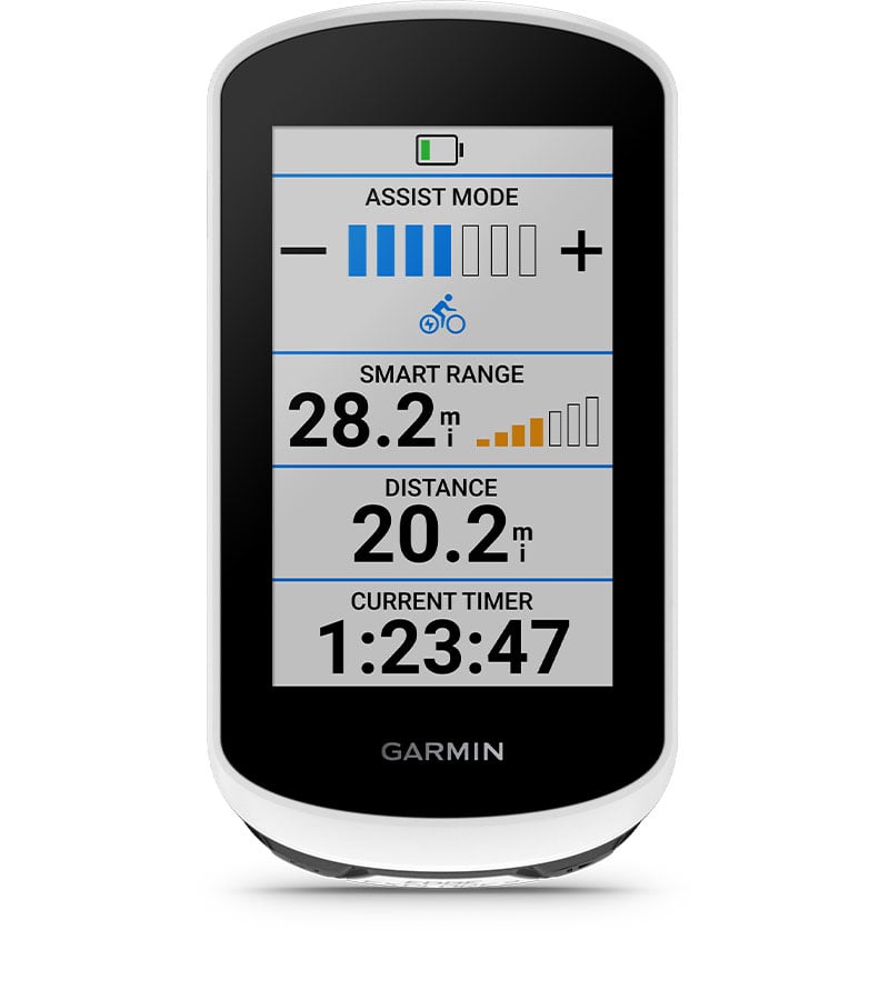 If you have an eBike that's compatible 3with ANT+ ®technology, you can see a dedicated eBike status screen showing data fields, including battery life and more. Even get smart routing and range alerts based on battery status, assist level and your planned course.