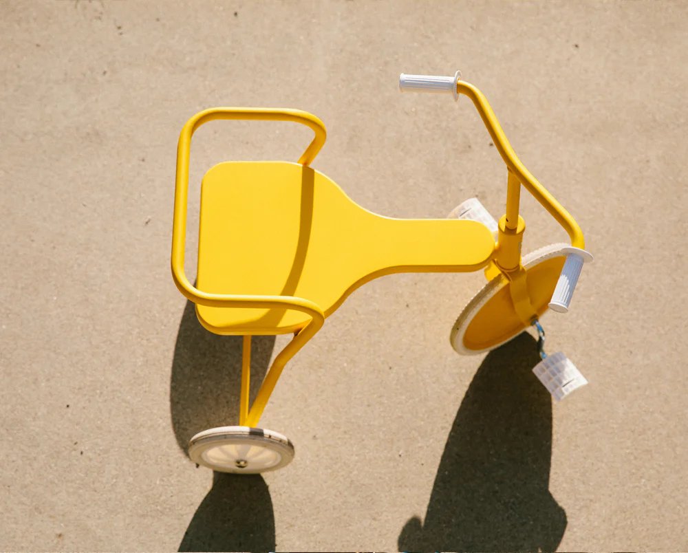 With its elegant form and sophisticated palette, the discerning parent will be relieved to know this tricycle is made of steel, with a solid wood seat, and real rubber wheels. Minimal plastic parts means it’s durable and won’t clutter your yard or our oceans.