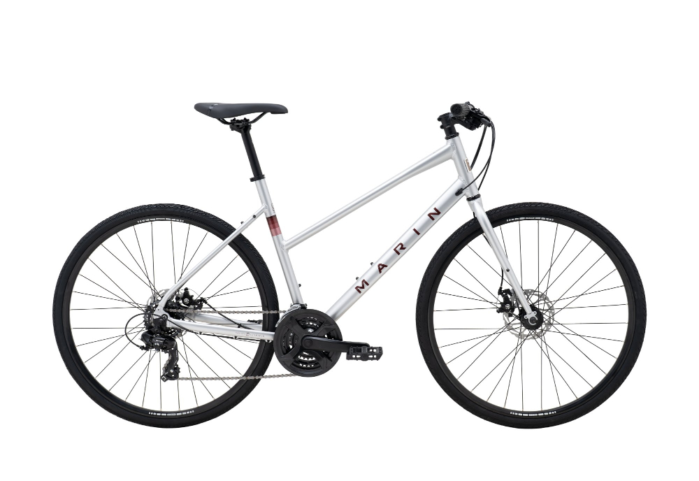 The Fairfax 1 is the most affordable in the collection. Named "Best Hybrid" many years running by Wirecutter it's built around a lightweight Series 1 aluminum frame and a sturdy CrMo fork and comes with a 3x7-speed Shimano drivetrain, Tektro mechanical disc brakes and plenty of reliable Marin components.