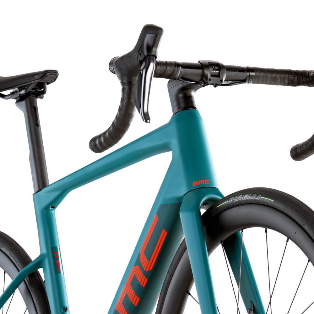 Everything that other e-road bikes aren't: The Roadmachine 01 AMP ONE is uniquely engineered for high mileage with hidden power. Innovative and researched, we're continuing the Roadmachine's lineage by allying a technically refined design with the exceptionally light and quiet class 3 TQ-HPR50 drive unit. Seamlessly integrated into the Premium Carbon frame, everything adds up to make this a favorite for endurance: note the Shimano Ultegra Di2 groupset, ICS2 stem and CRD-400 SL wheels. In short, it's an elevated BMC design, amplified to meet the timeless needs of the Roadmachine rider.