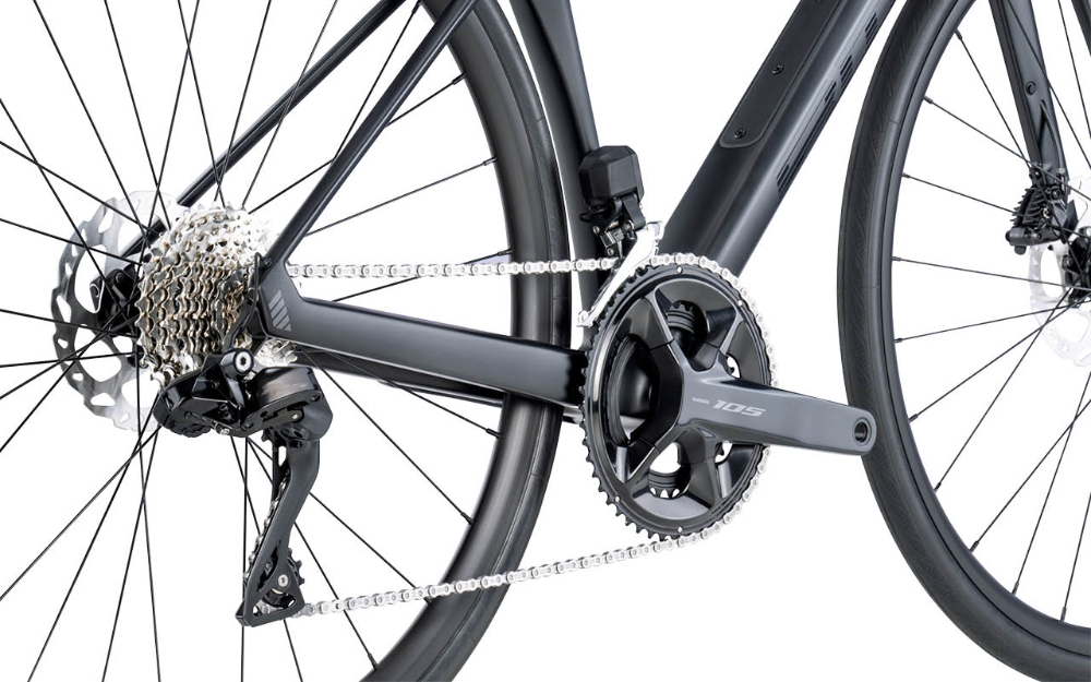 The choice of riders who want to go the distance and aren't willing to be confined to just one surface. Building on our expertise and legacy of endurance excellence, the Roadmachine combines comfort and efficiency into a highly versatile performance road bike that delivers an outstanding riding experience. With a lightweight carbon frame, the Roadmachine endurance bike is packed with features like full cable integration, downtube storage, and an integrated rear light, making it ready for any challenge. Wide, fast-rolling tires provide a smooth ride across various road surfaces. The Roadmachine TWO features a full Shimano 105 Di2 groupset for smooth electronic shifting and powerful braking. Our own integrated RSM01 stem and new Endurance Alloy handlebar provide top-notch ergonomics, offering the perfect balance of control and comfort for all your rides.
