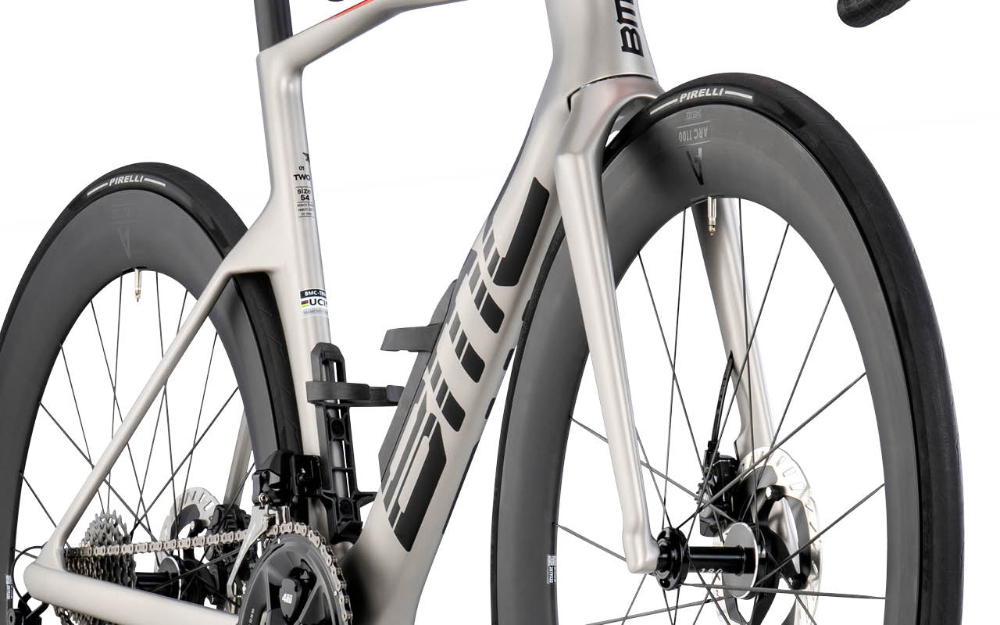 The ultrawide fork legs are unlike anything else seen in the peloton and help keep turbulent air, created by the front wheel, away from the frame.