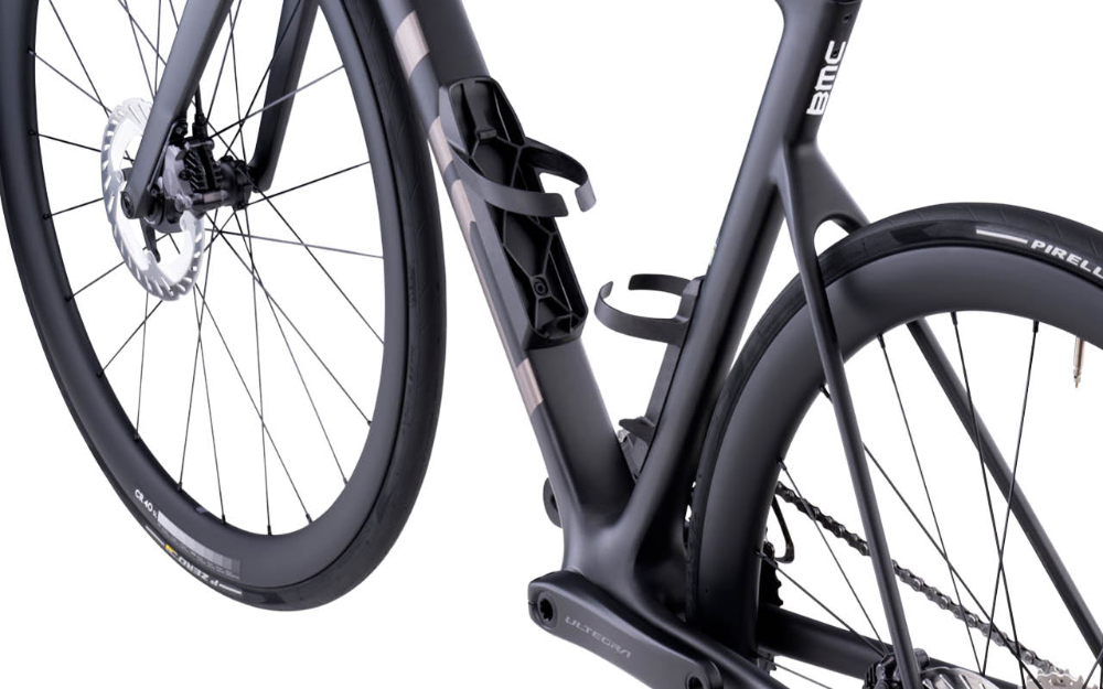 Our Aerocore system consists of two superlight carbon cages that seamlessly integrate with the reshaped down tube and seat tube, resulting in significant drag reduction when used with bottles.