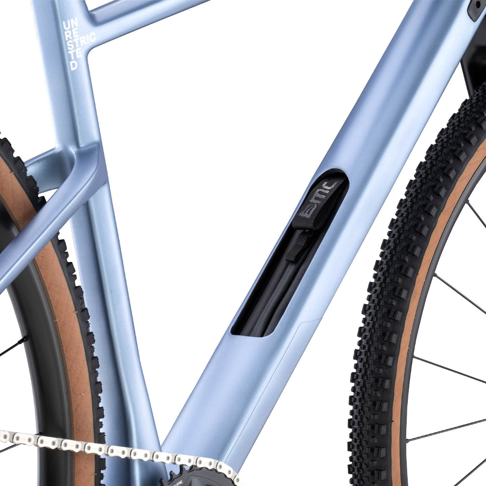 Secret storage? We've got it. URS now features a seamlessly integrated storage solution in the downtube to accommodate all the essentials you need for the ride.
