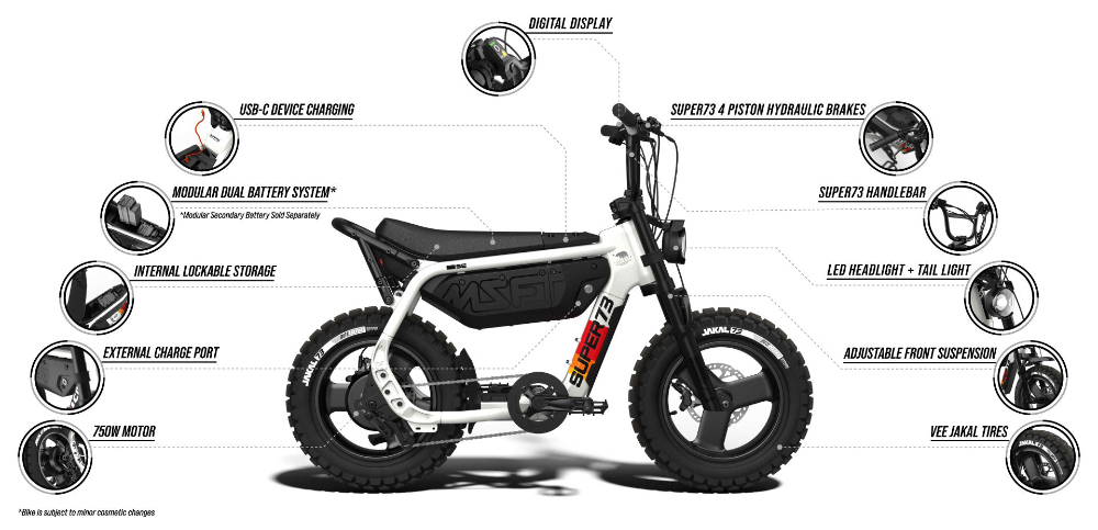 The SUPER73-MZFT always stood out from the crowd, but now it's edgier than ever in an all-new Special Edition. Ride a little louder with a novel trim, larger battery, and adjustable front suspension.