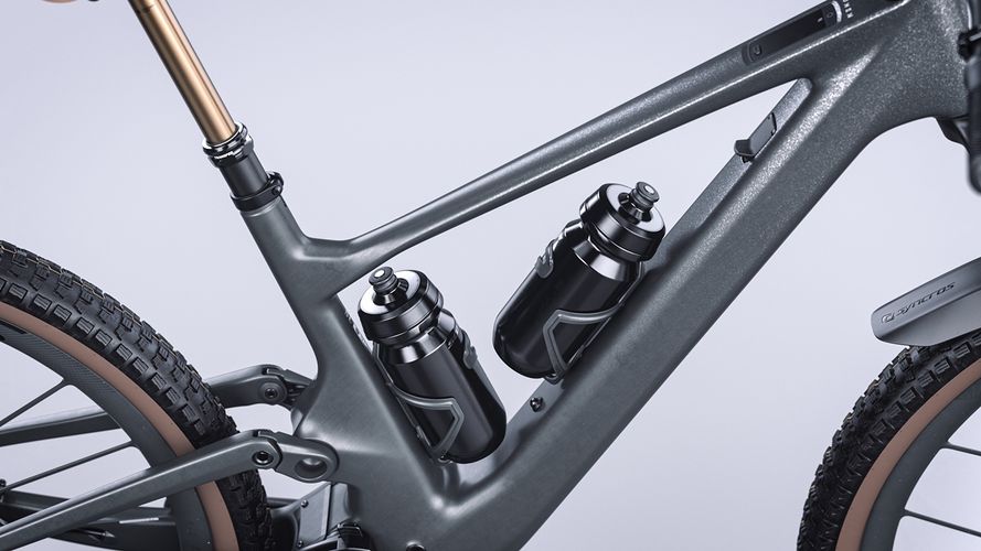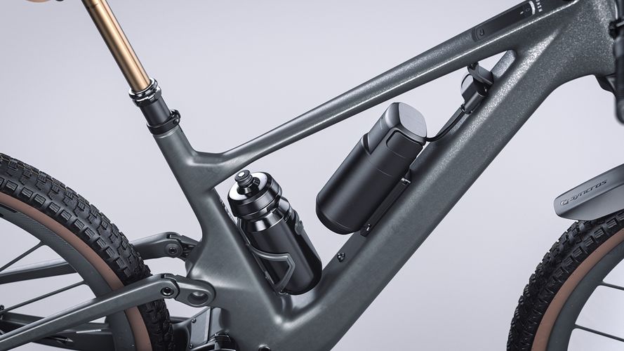 Unlike most full suspension E-Bikes, on the Lumen there is no need to choose between the range extender or a water bottle - between longer rides and staying hydrated. Thanks to the integrated shock there is space for both an external battery and water. An optional sliding mount system also allows an easy switch between the rear water bottle and the range extender, allowing both to be easily transported when out on longer rides.