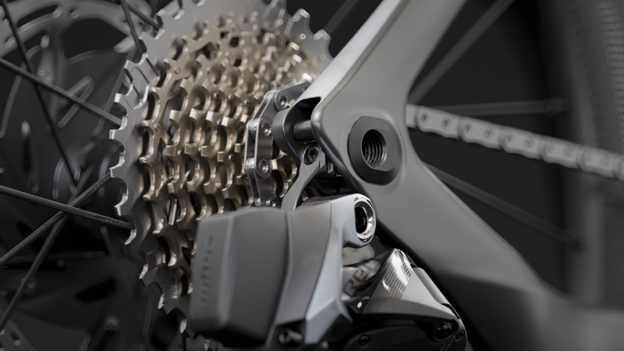 The closer the tire is to the seat tube, the more aero it is. In contrast to the front end, the back wheel is always aligned with the seat tube. To give every rider the chance to ride the most aerodynamic position no matter the wheel or tire choice, you have 6 different wheel mount positions.