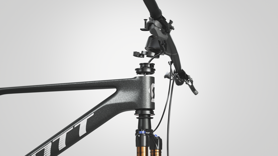 With the new Scale RC, you can adjust the head angle by 0.6 degrees slacker or steeper. This can be done without cutting cables or bleeding brakes. All you must do is disassemble the bar, rotate the headset cups 180 degrees, and reassemble.