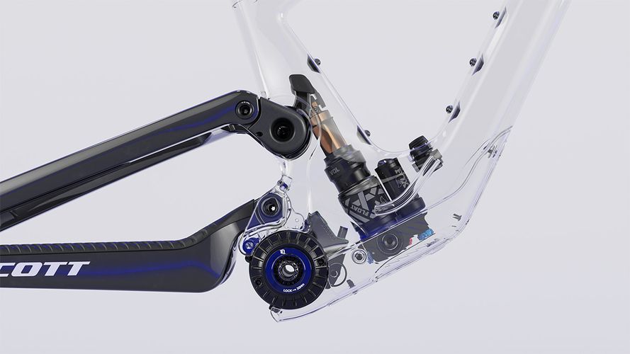 Our NUDE Suspension technology with the X-Fusion NUDE shock that favors more adjustability. When you pedal up to have the most fun on the way down, you want a shock that gives you full factory performance when things point downwards, but also a shock that won't slow you down when you need to ride back up.