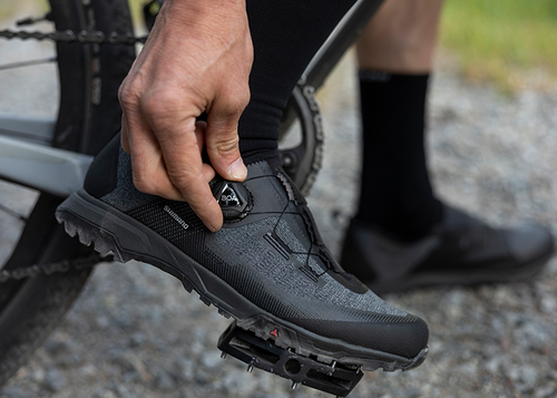 ShimanoDesigned for riders seeking a high-performance touring shoe without the need to clip in, Shimano's versatile and lightweight ET701 features a unique power-transfer blade midsole that boosts pedaling efficiency and delivers comfort and security off the bike.