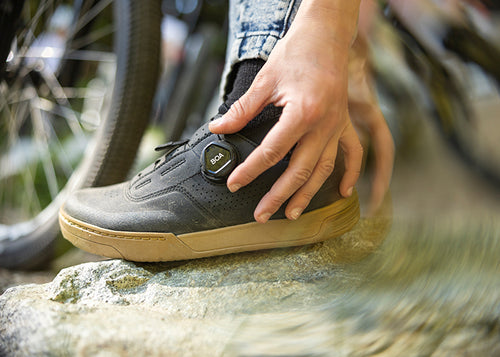 Single BOA dial delivers quick and precise closure adjustment while a unique pull tab with rubber grip helps secure the lace over the toe box for even tension across top of foot. Women's-tuned design is tighter around ball of foot for enhanced bike control and pedaling efficiency, while increased volume at the toe box and heel improve walking comfort and shock absorption.