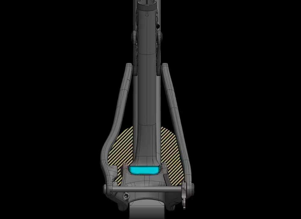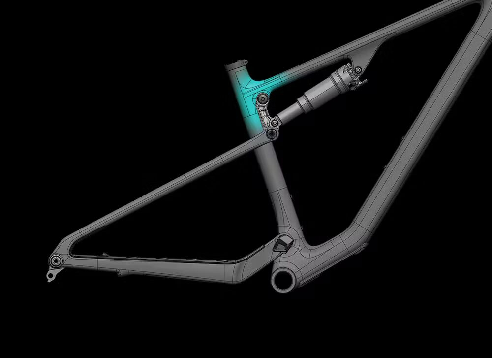 In contrast to conventional pivot-placement methodology for longer travel applications, the ASR’s pivot points are positioned so that existing tubing walls make up a significant portion of their shape and structure. To further reduce redundant carbon, and save weight.